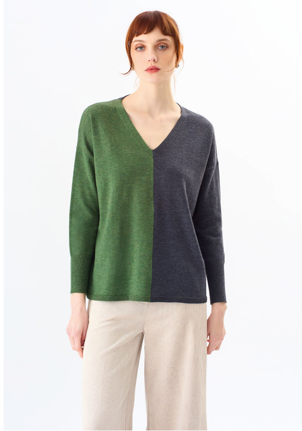 Una maglia contemporanea e originale firmata Anis White, caratterizzata da un design bicolore a pannelli verticali che unisce modernitร ed eleganza. Lo scollo a V morbido valorizza il dรฉcolletรฉ e rende il capo versatile, mentre la vestibilitร regolare e le maniche lunghe lo rendono comodo e adatto a diverse occasioni. Realizzata in un filato misto lana, poliestere, poliammide e acrilico, offre calore e resistenza con un tocco leggero e piacevole sulla pelle.