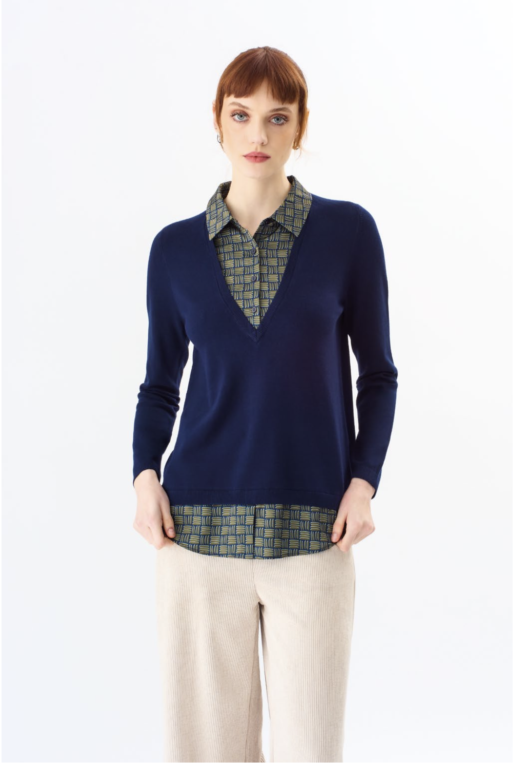 Perché sceglierla: versatile e contemporanea, offre l’eleganza della sovrapposizione con la praticità di una sola maglia.