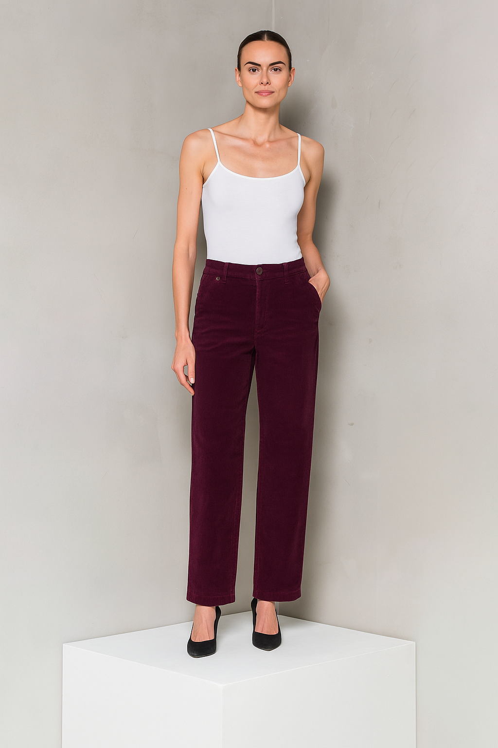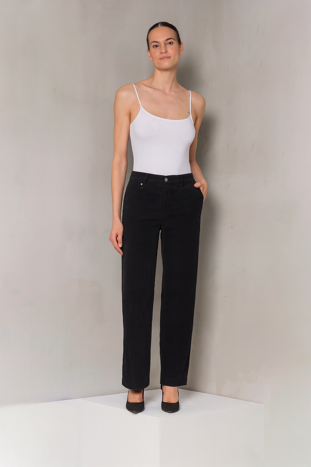 Comfort e raffinatezza si incontrano nel pantalone in velluto a coste firmato Chiara D’Alba. Un modello dal taglio dritto con vita media, pensato per accompagnare con eleganza la quotidianità. Il tessuto morbido e caldo rende questo capo ideale per le stagioni fredde, senza rinunciare a uno stile sofisticato e versatile.